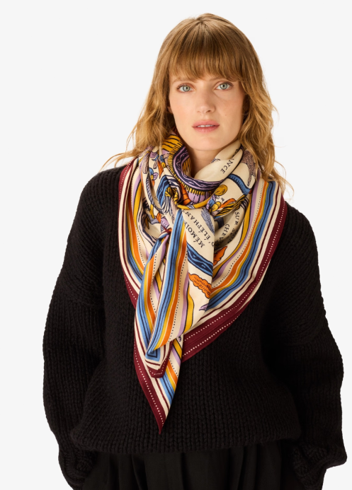 A staple at Inoui Editions for several seasons now, the square scarf is now a staple in the collection.  It can be put to many different uses, bringing art and clothing together and becoming a playful and versatile part of any outfit. The 130x130 square scarf can be worn around the neck or tied into a skirt or wrap-around top.