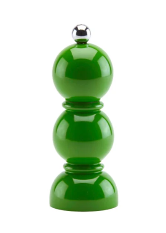 The Leaf Green Lacquered Minibob Mill is suitable for either Salt or Pepper. Featuring the iconic bobbin shape.