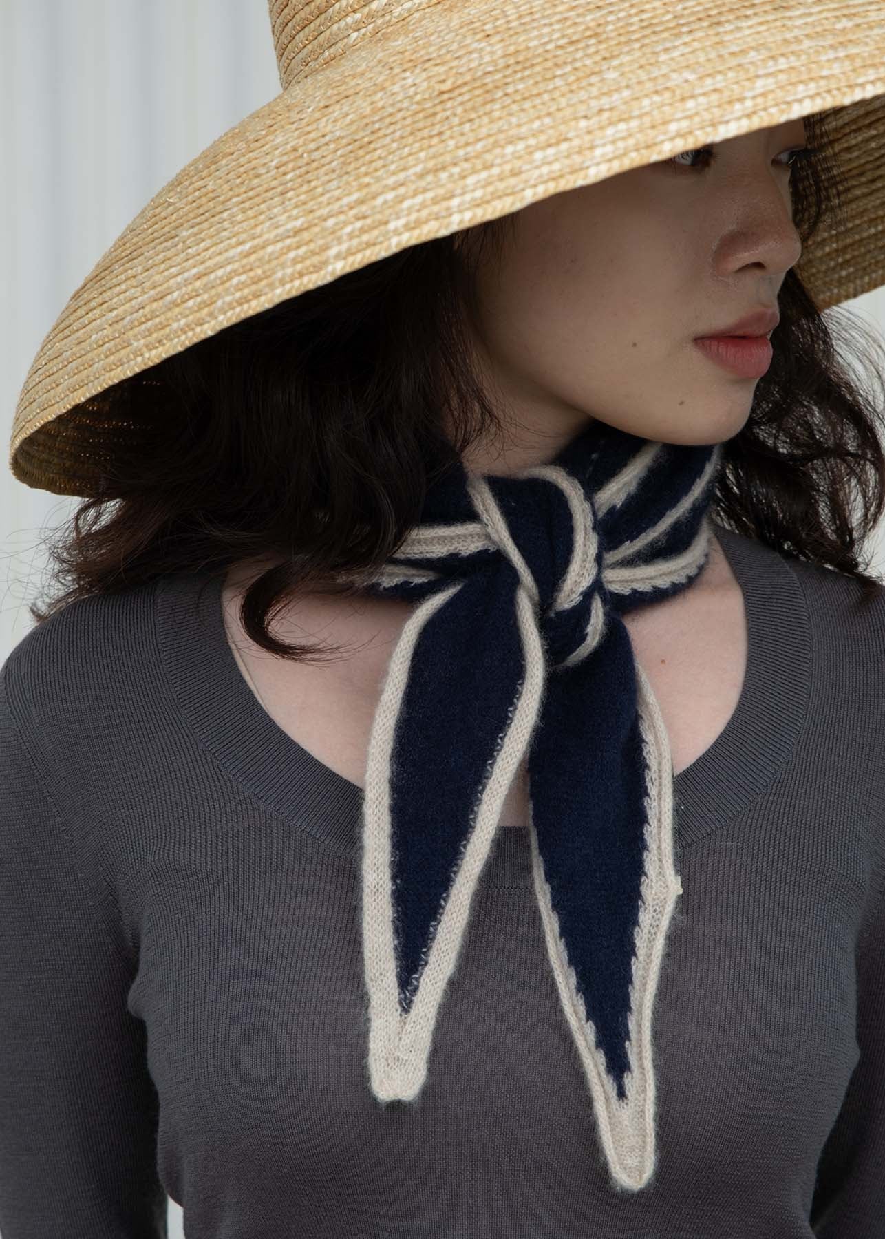 Austen Spindle-shaped Knitted Cashmere Scarf Navy
