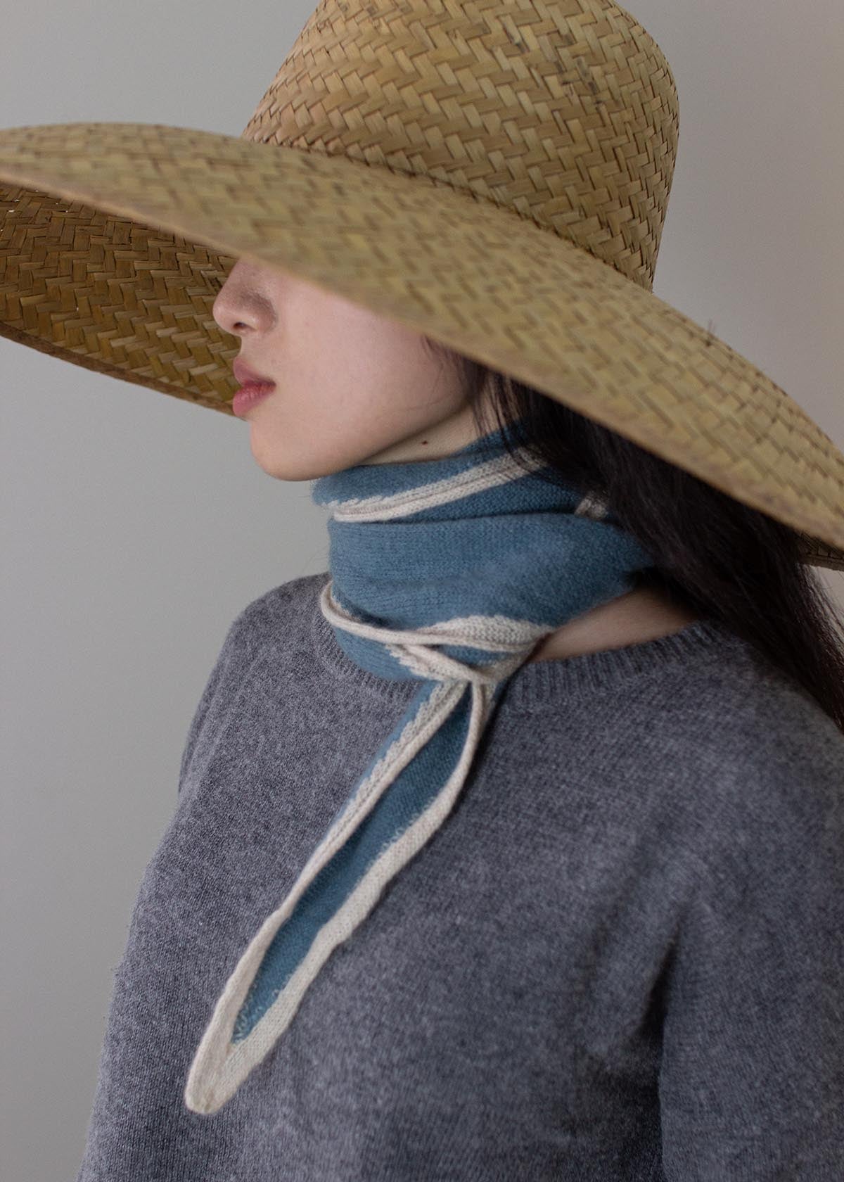 This lovely, almost weightless scarf creates an instant impression. It’s knitted in a spindle-shaped design, which makes it lightweight and compact, yet still large enough to be worn in a variety of ways, while being the perfect size for a french-knot style. The air force blue colour adds a touch of clear sky to your outfits.