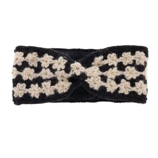 Delicate mohair and dainty hand-embroidered flowers come together to create this darling floral trim headband. 78% Mohair, 16% Wool, 6% Nylon, body, fleece lined.