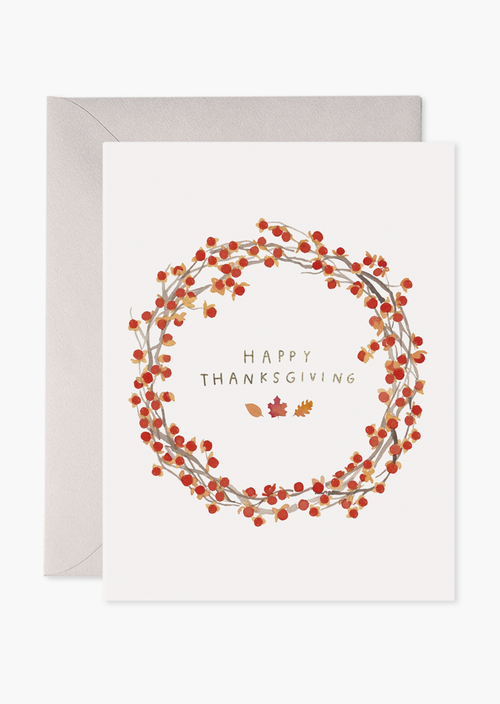 Autumn Berry Wreath Thanksgiving Greeting Card