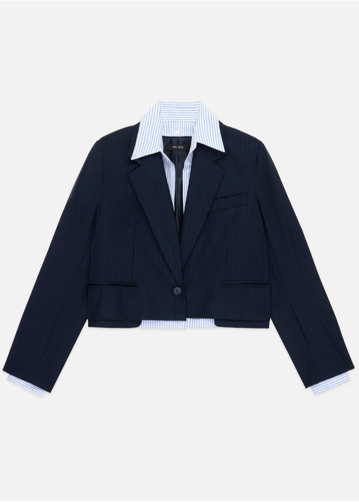 Engineered for a life in motion, the Bar Blazer brings a reactive, street-style spontaneity to modern tailoring. This transformative piece juxtaposes a structural wool shell with a crisp, detachable cotton poplin underlayer that mimics the look of a layered shirt. Its cropped fit eliminates traditional bulk, offering a look of tomboyish nonchalance that thrives in the city’s restless push and pull.