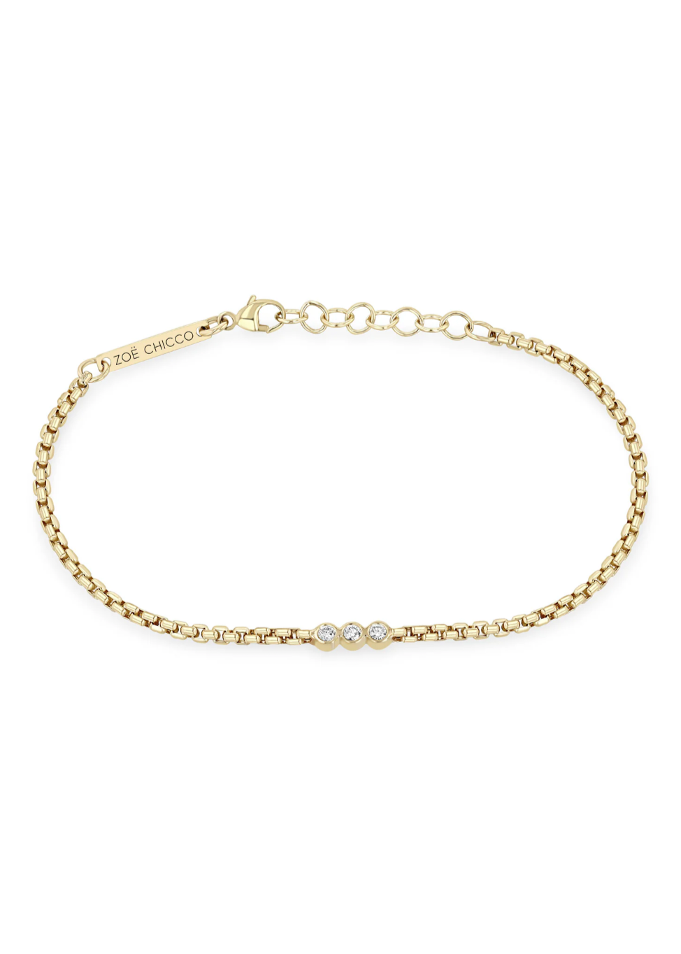 Zoe Chicco 3 Diamond Bezel Box Chain Bracelet